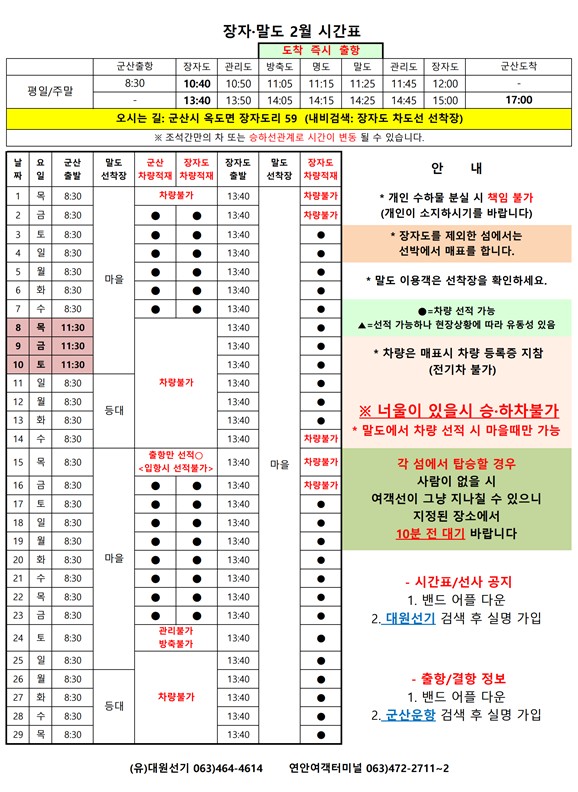 | 77 | 말도 | 2024 | 2 | 말도 여객시간표 알림 |