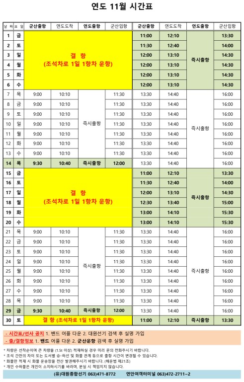 | 89 | 연도 | 2024 | 11 | 연도 11월 여객시간표 알림 |