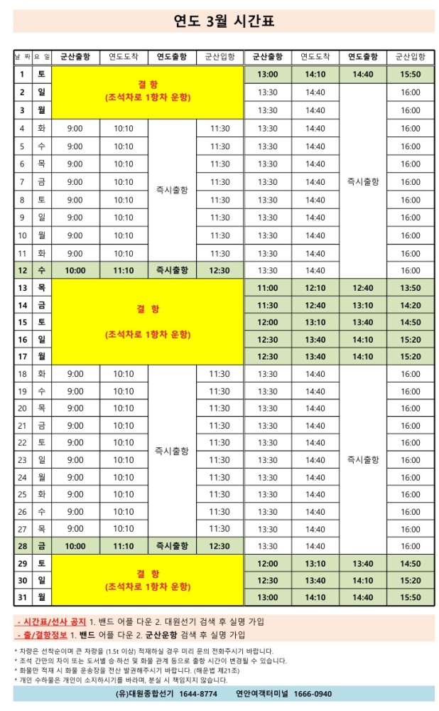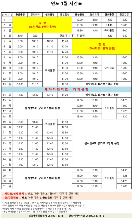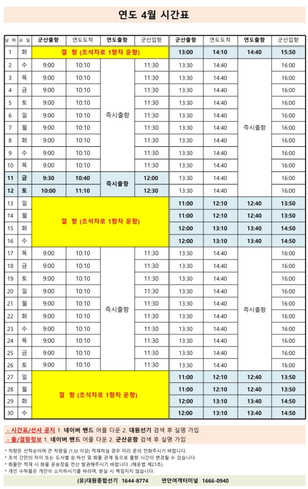 | 94 | 연도 | 2025 | 4 | 연도 4월 여객선 시간표 안내 |