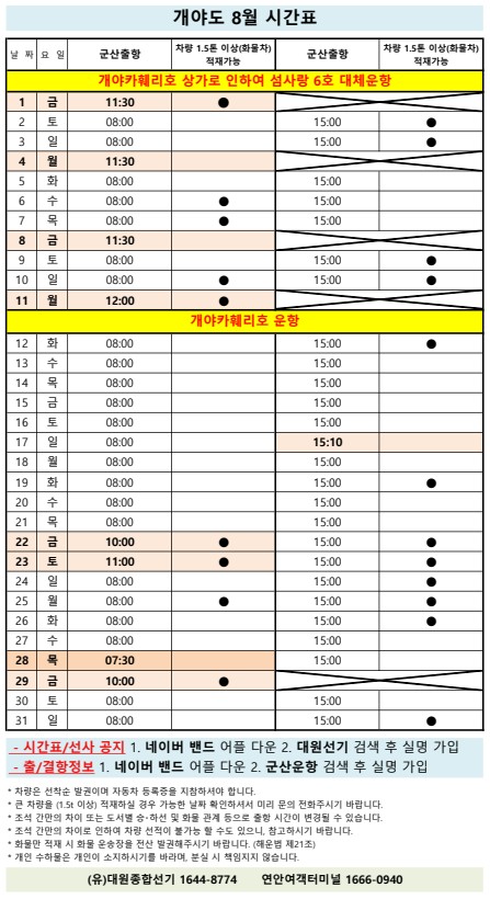 | 95 | 개야도 | 2025 | 8 | 개야도 8월 여객선 시간표 안내 |