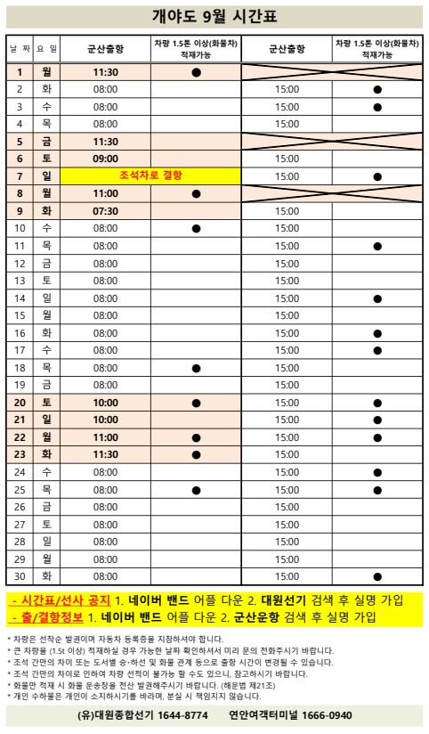 | 96 | 개야도 | 2025 | 9 | 개야도 9월 여객선 시간표 안내 |