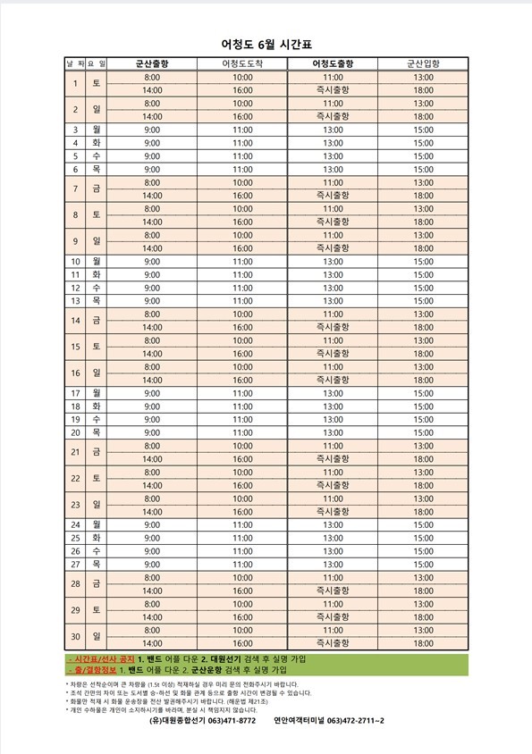 | 641 | 방축도 | 2024 | 6 | 방축도 6월 여객시간표 알림 |