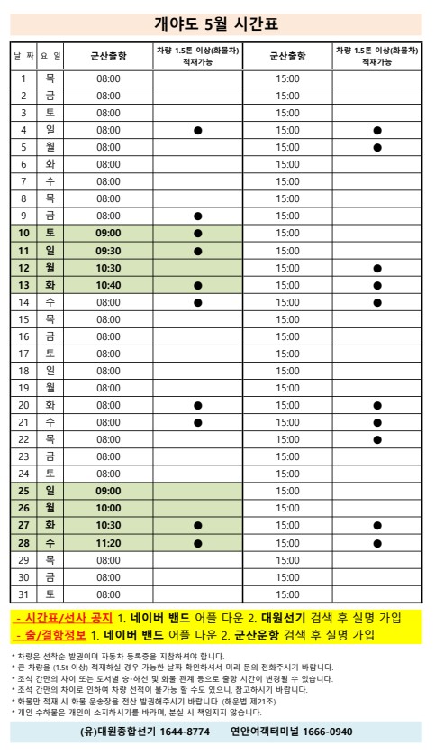 | 723 | 연도 | 2025 | 5 | 연도 5월 여객선 시간표 안내 |