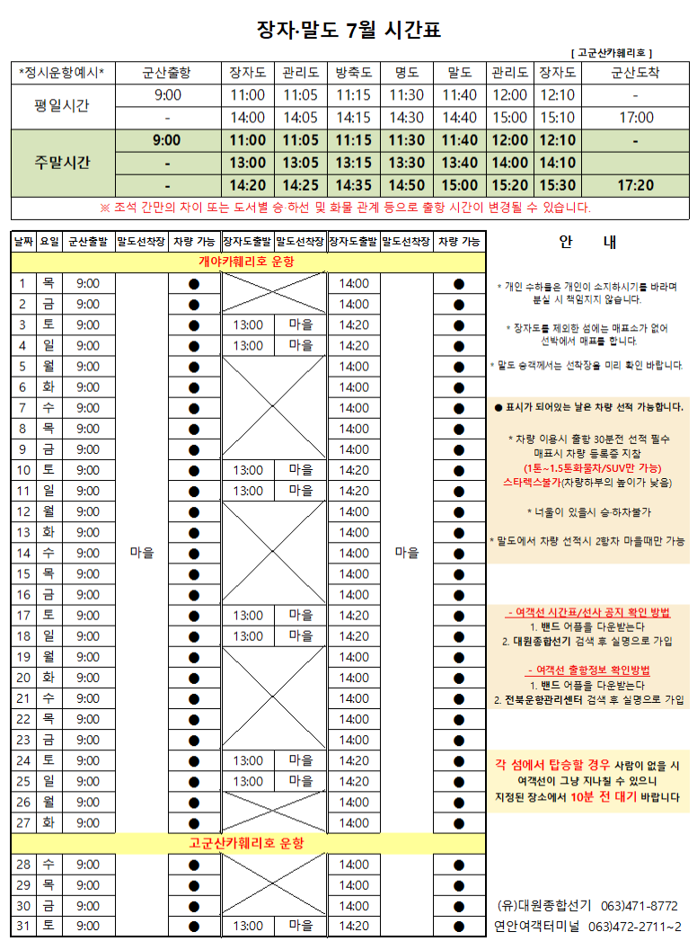 7월 말도 여객시간표 알림