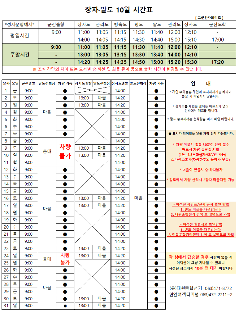 10월 여객시간표 알림
