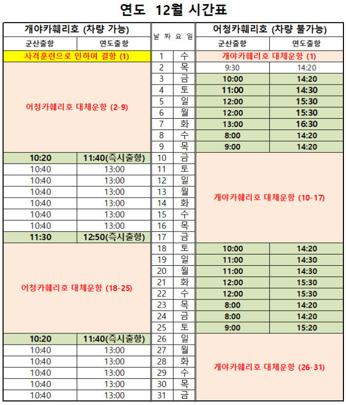 문화관광국 관광진흥과에서 제작한 여객선 시간표 저작물은 "공공누리" 출처표시-상업적 이용금지-변경금지 조건에 따라 이용 할 수 있습니다.