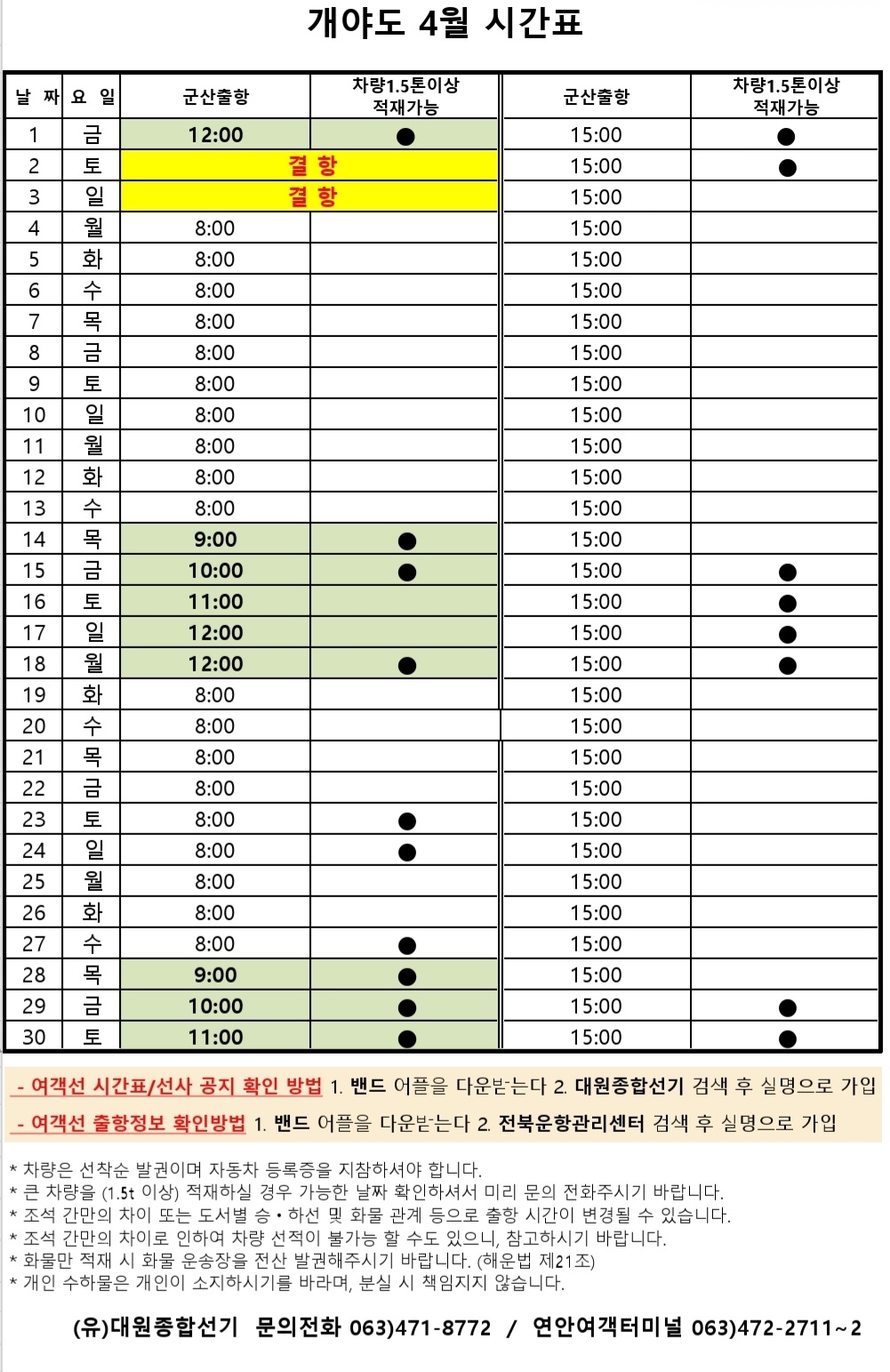 4월 개야도 여객시간표 알림