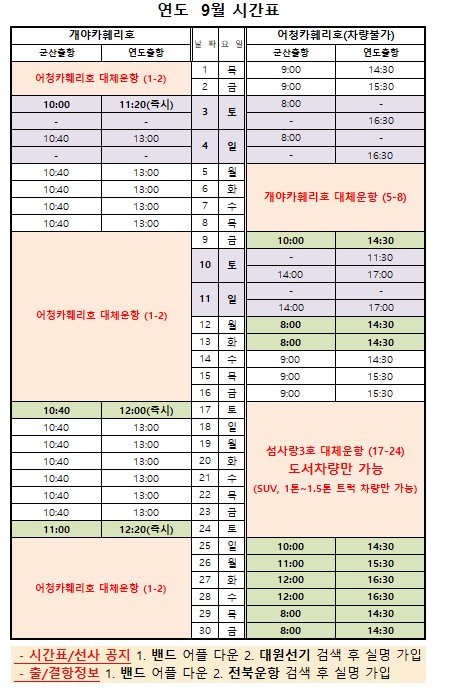 9월 연도 여객시간표 알림