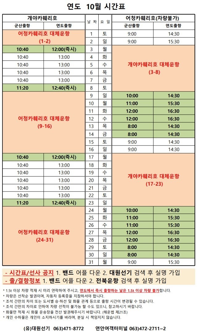 문화관광국 관광진흥과에서 제작한 여객선 시간표 저작물은 "공공누리" 출처표시-상업적 이용금지-변경금지 조건에 따라 이용 할 수 있습니다.