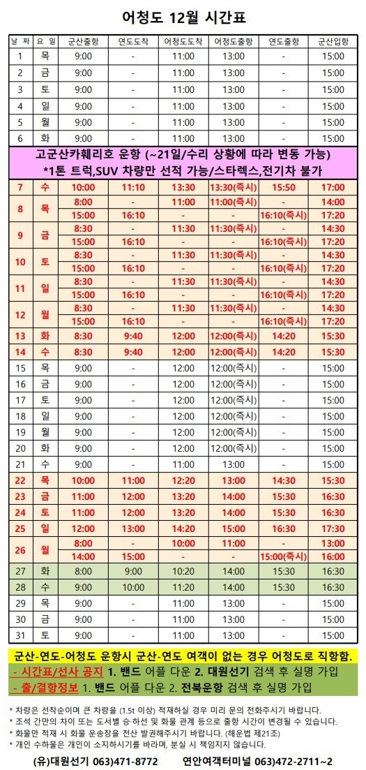 문화관광국 관광진흥과에서 제작한 여객선 시간표 저작물은 "공공누리" 출처표시-상업적 이용금지-변경금지 조건에 따라 이용 할 수 있습니다.