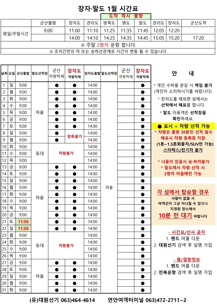 문화관광국 관광진흥과 에서 제작한 여객선 시간표 저작물은 "공공누리" 출처표시-상업적 이용금지-변경금지 조건에 따라 이용 할 수 있습니다.