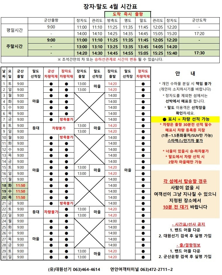 문화관광국 관광진흥과에서 제작한 여객선 시간표 저작물은 "공공누리" 출처표시-상업적 이용금지-변경금지 조건에 따라 이용 할 수 있습니다.