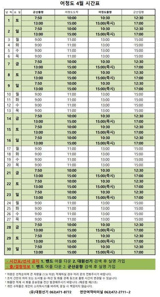 문화관광국 관광진흥과에서 제작한 여객선 시간표 저작물은 "공공누리" 출처표시-상업적 이용금지-변경금지 조건에 따라 이용 할 수 있습니다.