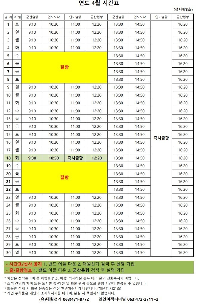 문화관광국 관광진흥과에서 제작한 여객선 시간표 저작물은 "공공누리" 출처표시-상업적 이용금지-변경금지 조건에 따라 이용 할 수 있습니다.