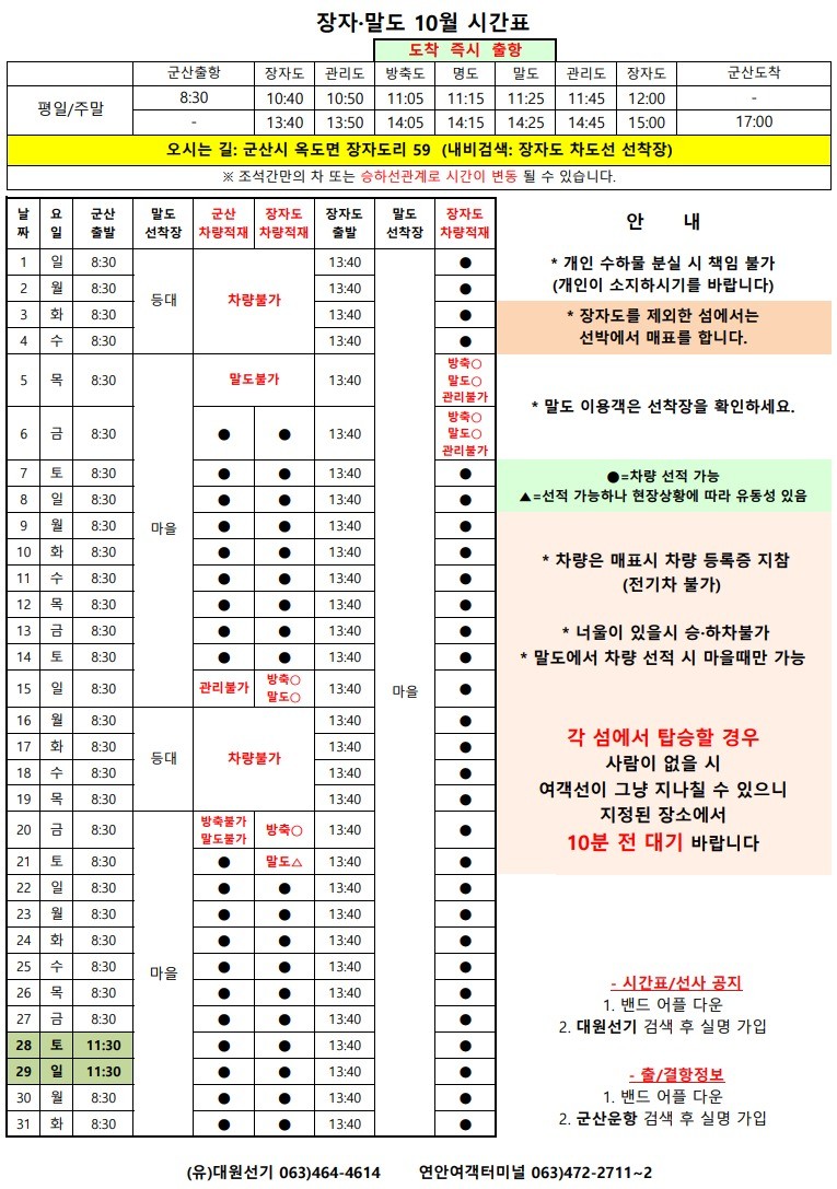 문화관광국 관광진흥과에서 제작한 여객선 시간표 저작물은 "공공누리" 출처표시-상업적 이용금지-변경금지 조건에 따라 이용 할 수 있습니다.