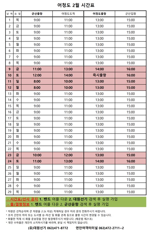 관리도 2월 여객시간표 알림