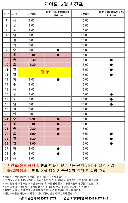 연도 여객시간표 알림