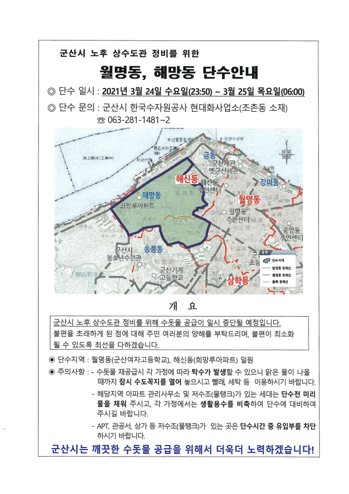 | 14 | 지방상수도 현대화사업 추진에 따른 단수 알림 |